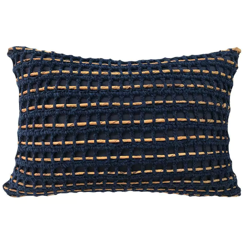 - Frente trabalhado em croche e palha feito á mão e acabamento em costura ;