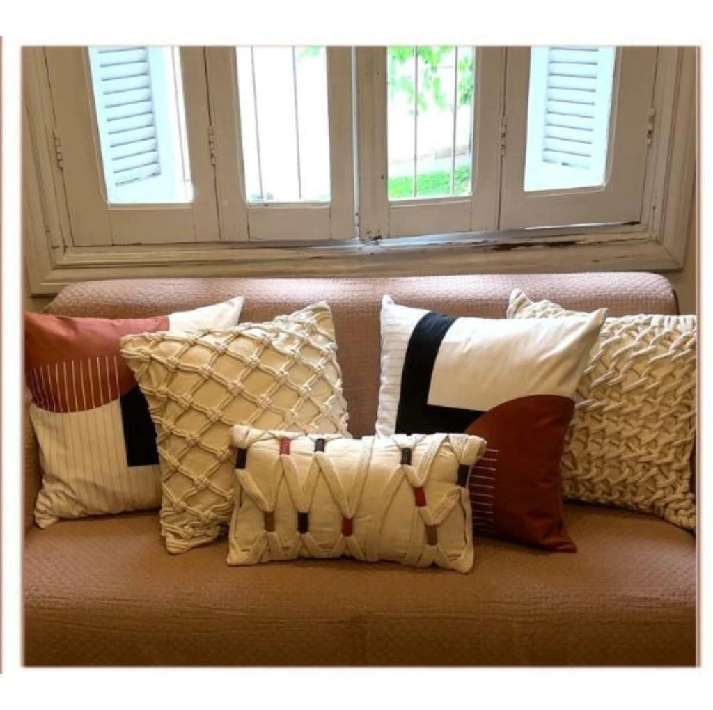 Frente trabalhada e verso liso; Confeccionados com zíper que garante acabamento perfeito e facilidade na lavagem;