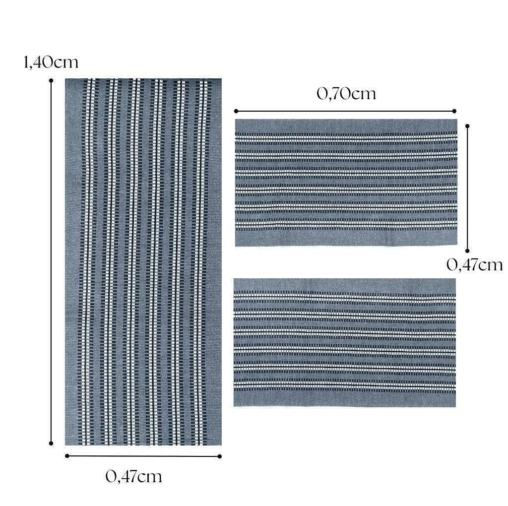 Contém Kit Passadeira – 2 tapetinhos (0,47x0,70m) e 01 passadeira (0,47x1,40m)