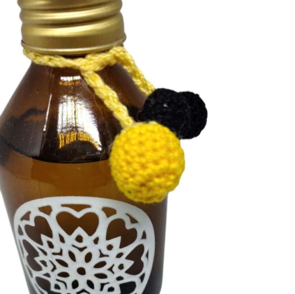 Detalhe em crochê da essência da fruta