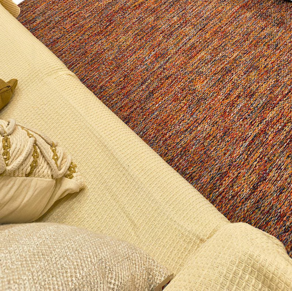 A trama é feita com fios de algodão mais encorpados, o que confere ao tapete uma estrutura firme e robusta — ideal para quem busca beleza com resistência.