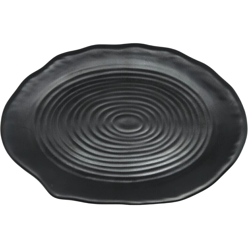 Travessa oriental em tom preto com acabamento orgânico, perfeita para servir pratos com sofisticação e estilo.